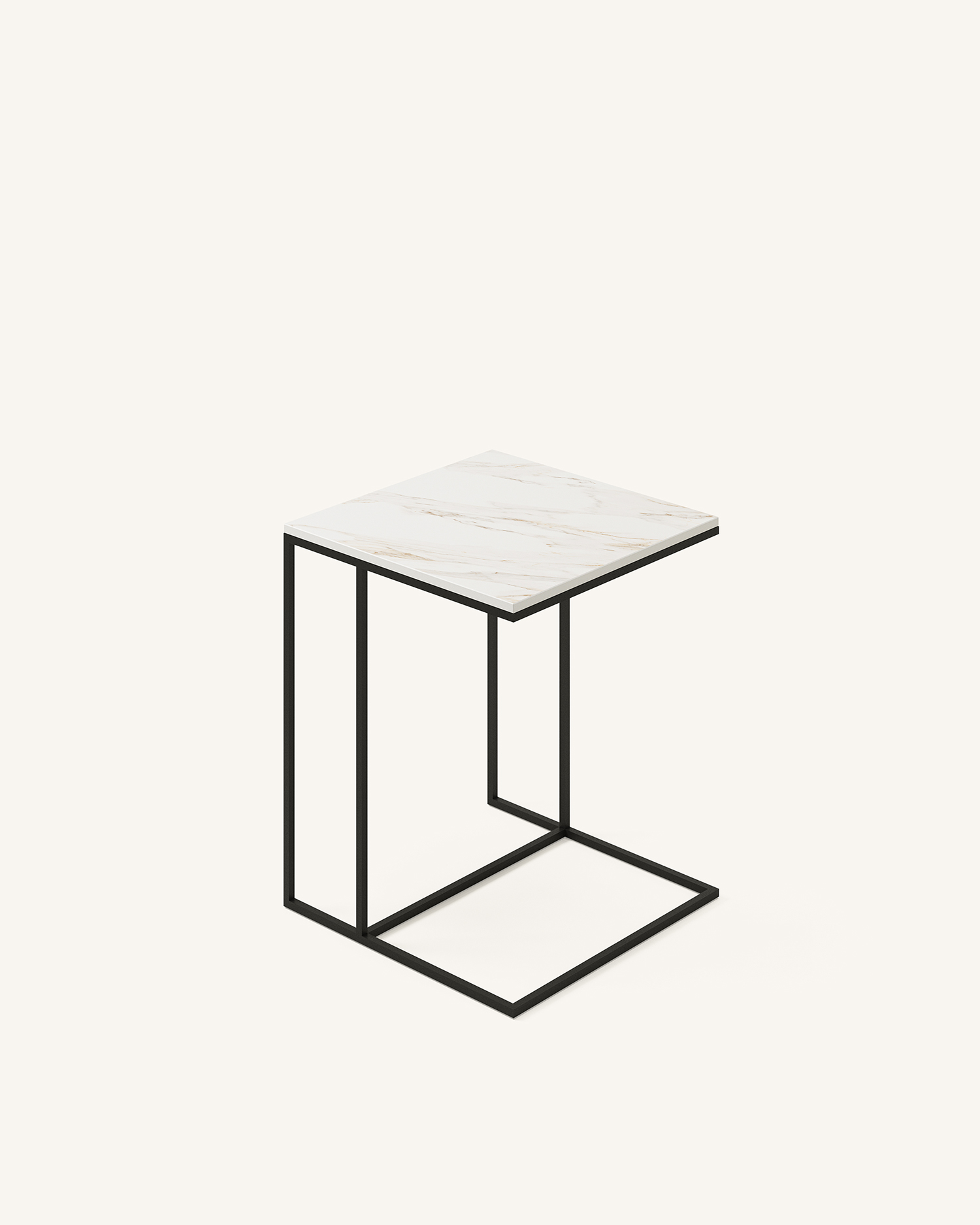 La colección Petra equilibra diseño y funcionalidad con una estética ligera y sofisticada. Su estructura metálica, delicada pero firme, se complementa con sobres en materiales nobles como nogal, roble o porcelánico. Una familia de piezas que transforma cualquier espacio con un toque de elegancia natural.